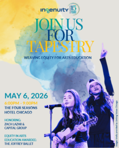 Ingenuity is proud to celebrate 15 years of guiding and uniting our city to improve access, quality, and equity in arts education for all CPS students. Since our founding, we’ve championed the belief that strong arts programs boost engagement, attendance, test scores, and overall academic success—while also strengthening students’ confidence and social connections. Through our initiatives, we have enabled 98,000 more CPS students to engage with the arts. Yet, 83,000 students still lack access to quality arts programs. As we look to the next 15 years, we remain committed to ensuring every student can benefit from the arts’ transformative power—empowering them to create, flourish, and thrive.