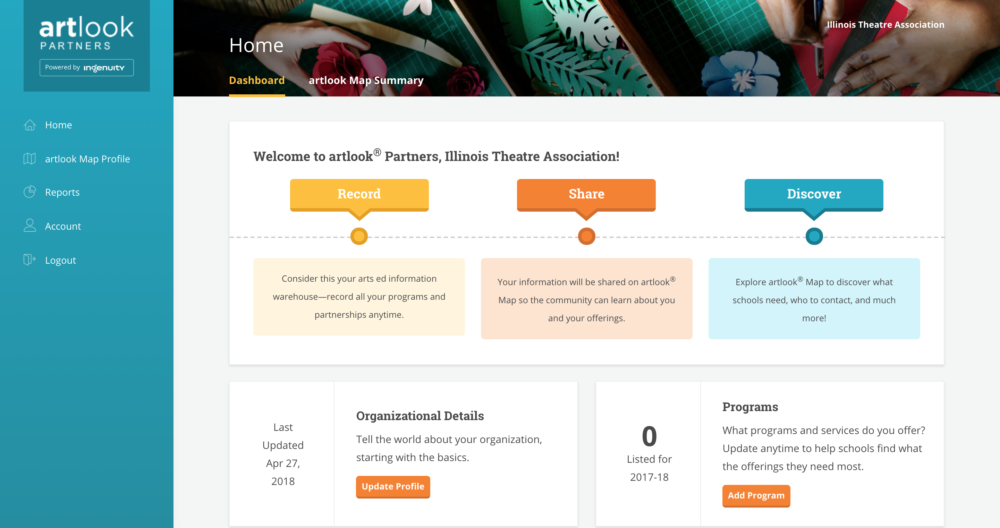 artlook® is Ingenuity’s online hub for school-level and organization-level arts education data that allows arts communities to work collaboratively and strategically to deliver high-quality arts education experiences to every child, in every grade, in every school. It is a public-facing platform that provides detailed profiles of schools and arts organizations across Chicago, showcasing their arts offerings. artlook® serves multiple purposes: It helps arts educators, school leaders, and community partners access and share information about arts programming, while promoting greater transparency in the sector.